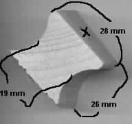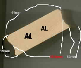 side view of Bea, Francois/Frank has the same side view. Frank is long enough to get all your fingers on. Not in the picture is the "depth" which is 26 mm, same as the height. (F's depth is 90+mm) The pinches are hardwood scraps from the making of rubber stamps with wooden backs. |